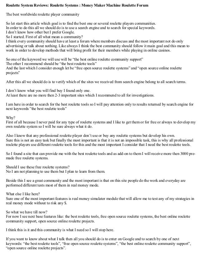 VII. Roulette Links, Resources, Software, Systems